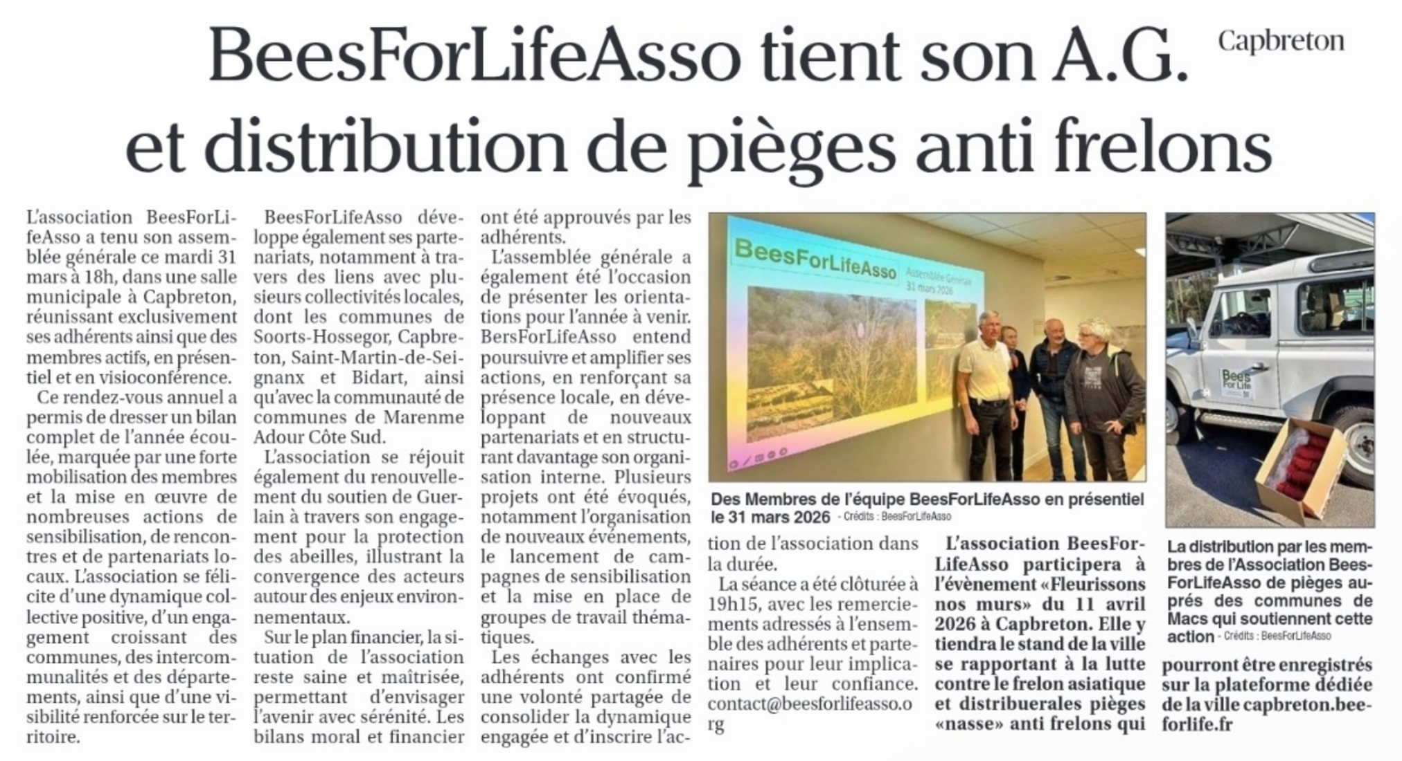 BeesForLife participe activement à la lutte contre le frelon asiatique